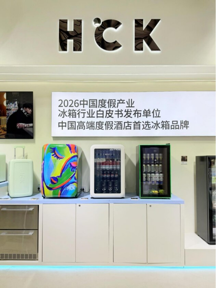 2026中国度假产业冰箱行业白皮书发布单位、欧洲新贵美学家电HCK哈士奇,首次重磅亮相上海新国际博览中心W3馆K13展位,凭借独具格调的全场景高颜值产品矩阵,为高端酒店、精品民宿、度假综合体带来全新的空间升级与品质赋能,开展便人气爆棚,吸引众多国内外高端度假酒店、精品民宿采购方驻足洽谈,现场咨询合作不断,成为展会备受瞩目的实力品牌。
