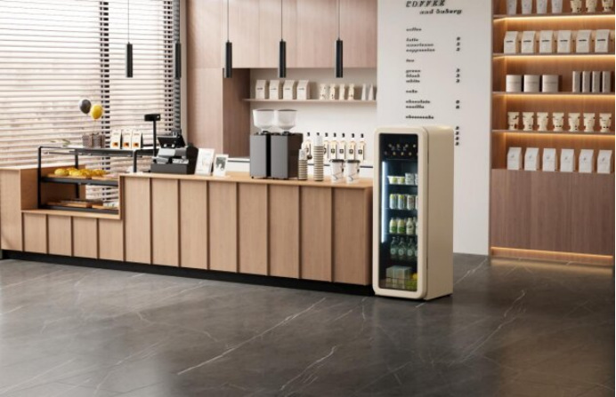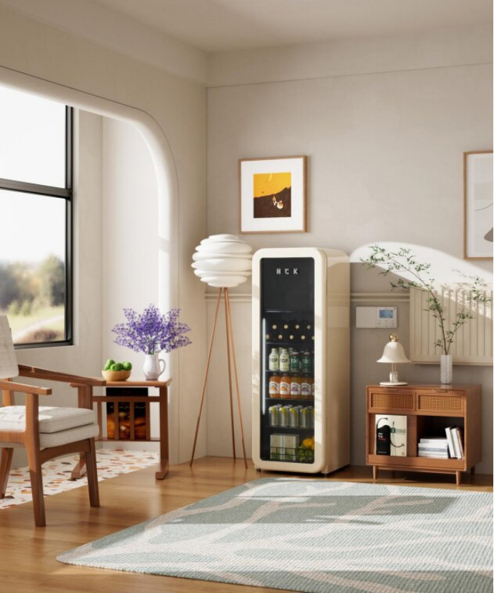 HCK哈士奇摒弃呆板方正造型,线条圆润优雅,轻松适配轻奢、新中式、法式、简约等各类酒店装修风格,可自由嵌入客房迷你吧、行政酒廊等区域,还支持酒店专属定制,无论是品牌LOGO丝印、专属色彩定制,还是内部饮品陈列布局优化,都能完美契合酒店品牌调性,搭配酒店定制水、特色饮品,让制冷设备成为空间里的美学亮点,瞬间提升整体空间档次。